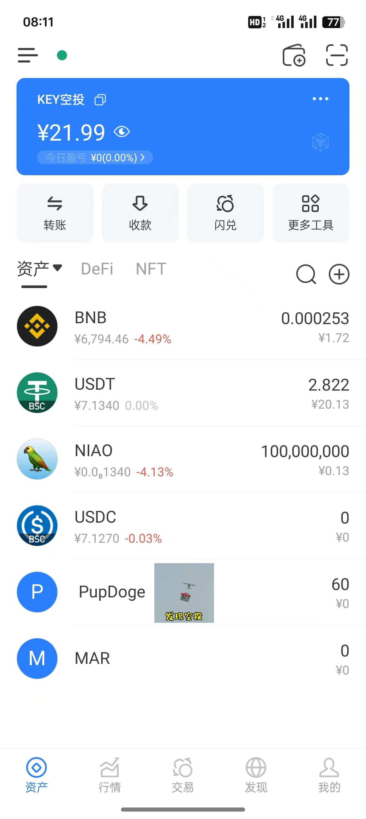 地址复制钱包币安链发现打开,需bnb燃料,非常低可以忽略!建议弄个没啥钱的钱包,放少许bnb即可领!